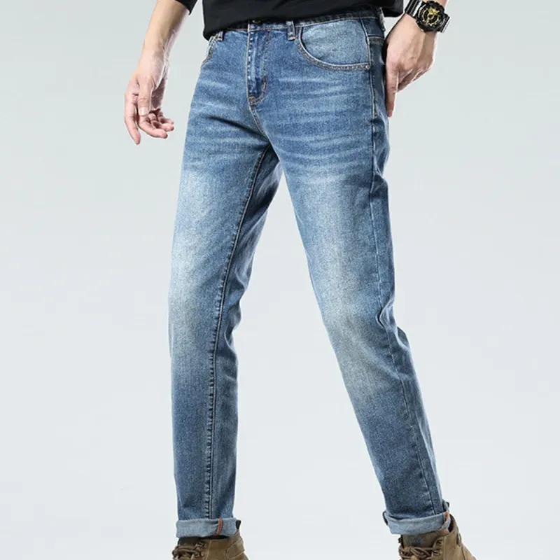 『S-3XL』春季 スリム 重工 刺繍 伸縮性 ヴィンテージ メンズデニムパンツ
