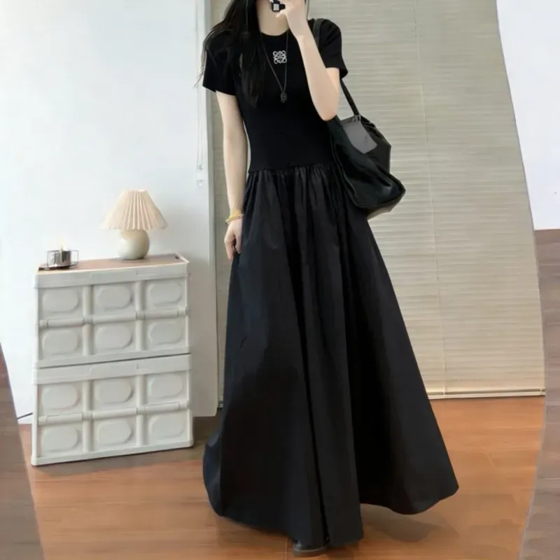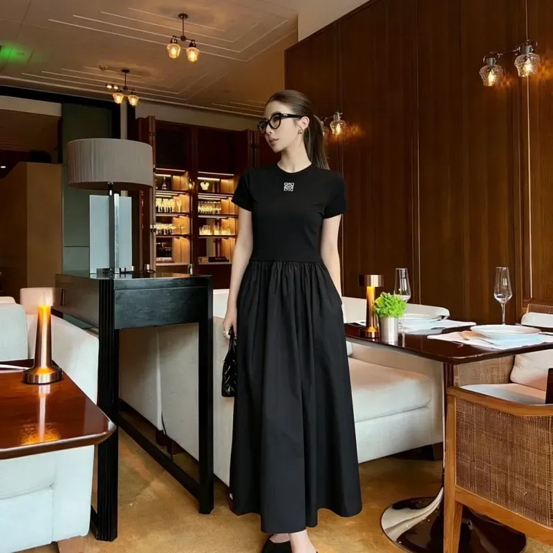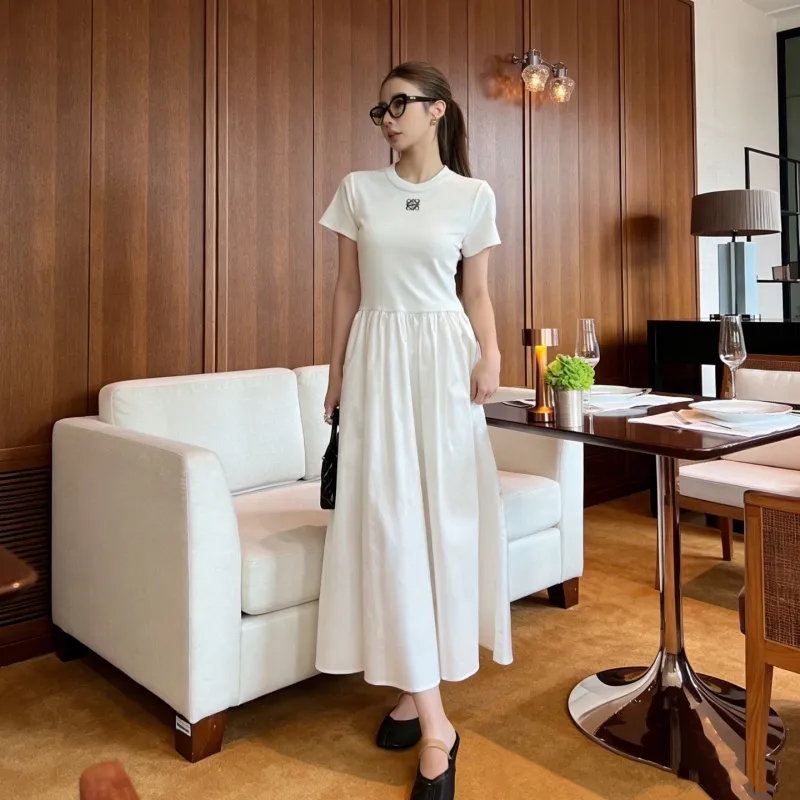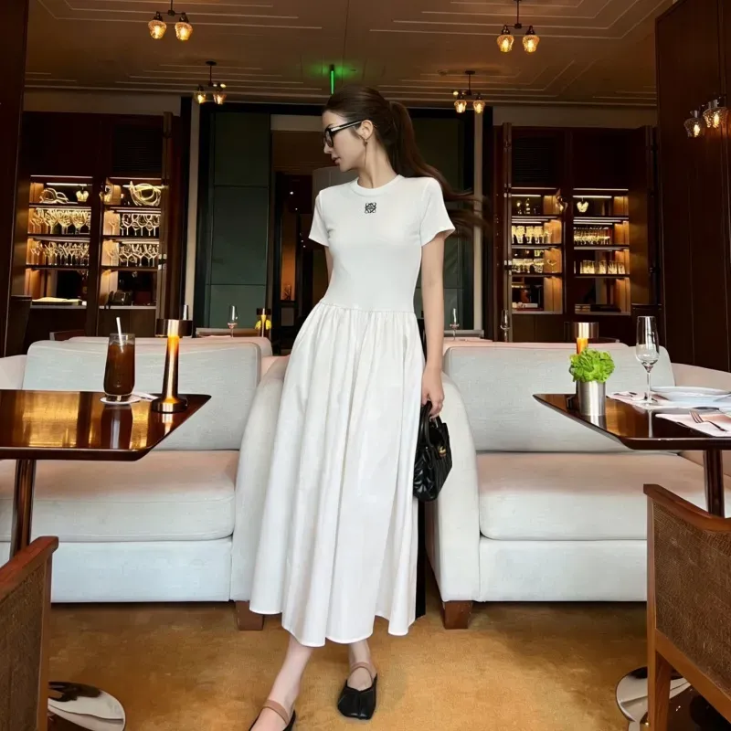 『S-L』大注目 着瘦せ 高級感 シンプル 刺繍 半袖 ワンピース
