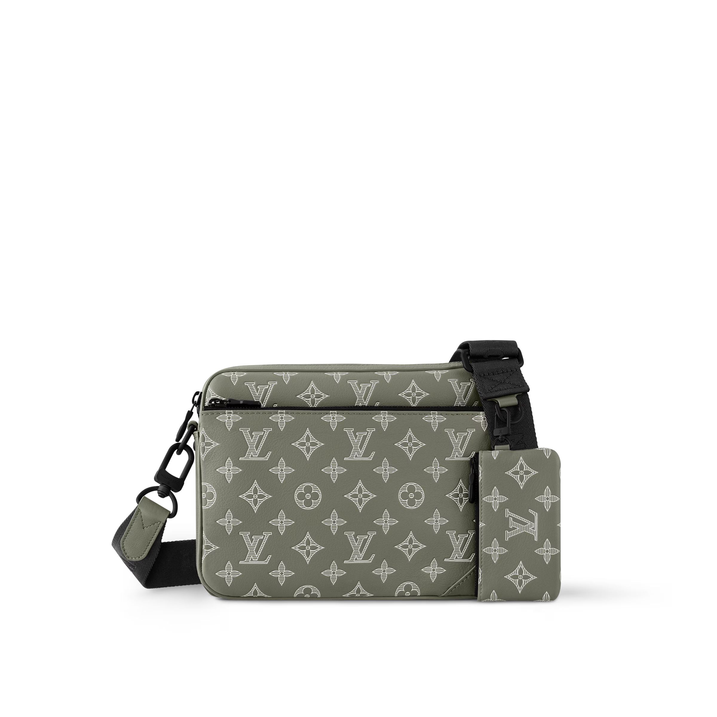 モノグラム・エクリプス キャンバスと、そのカラーを反転させたモノグラム・エクリプス リバース キャンバスを使用した「トリオ・メッセンジャー」。トーン・オン・トーンのグレーの色合いであしらったアイコニックなモチーフが、機能的なハイブリッドデザインを際立たせます。ボディには取外し可能なファスナー付きポケットを、ストラップにも同じく取り外し可能なコインパースを備えた、伝統的なクロスボディバッグを進化させたアイテムです。