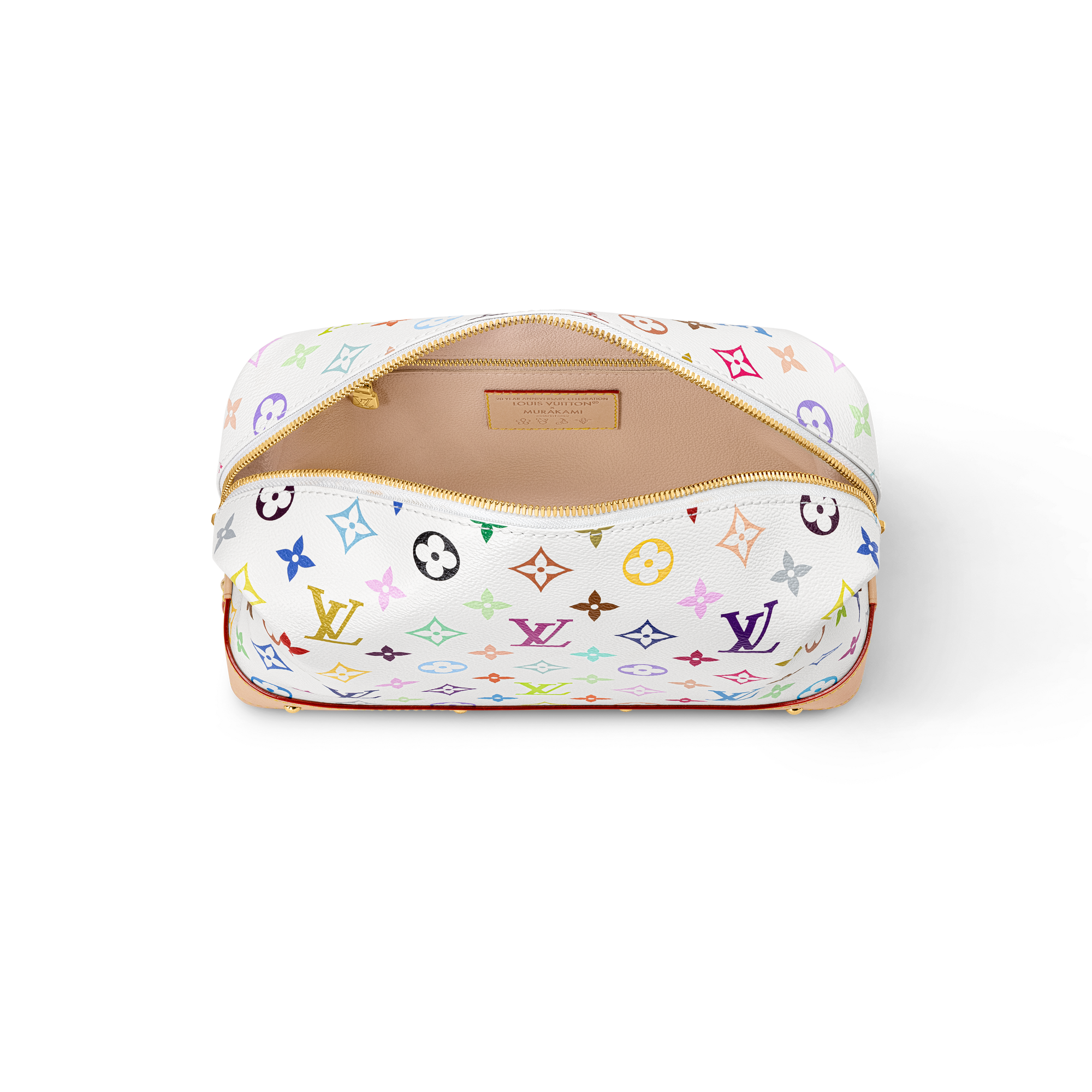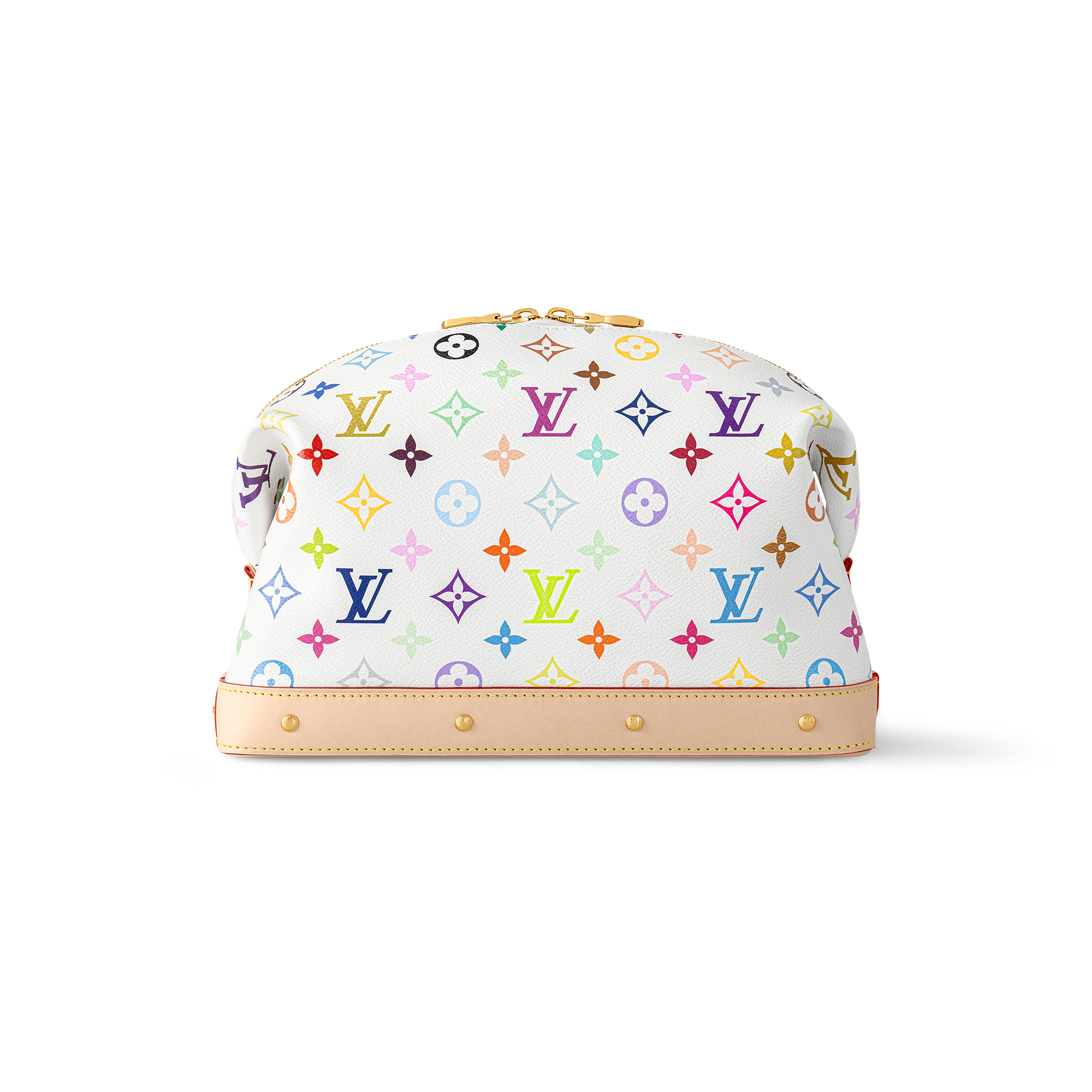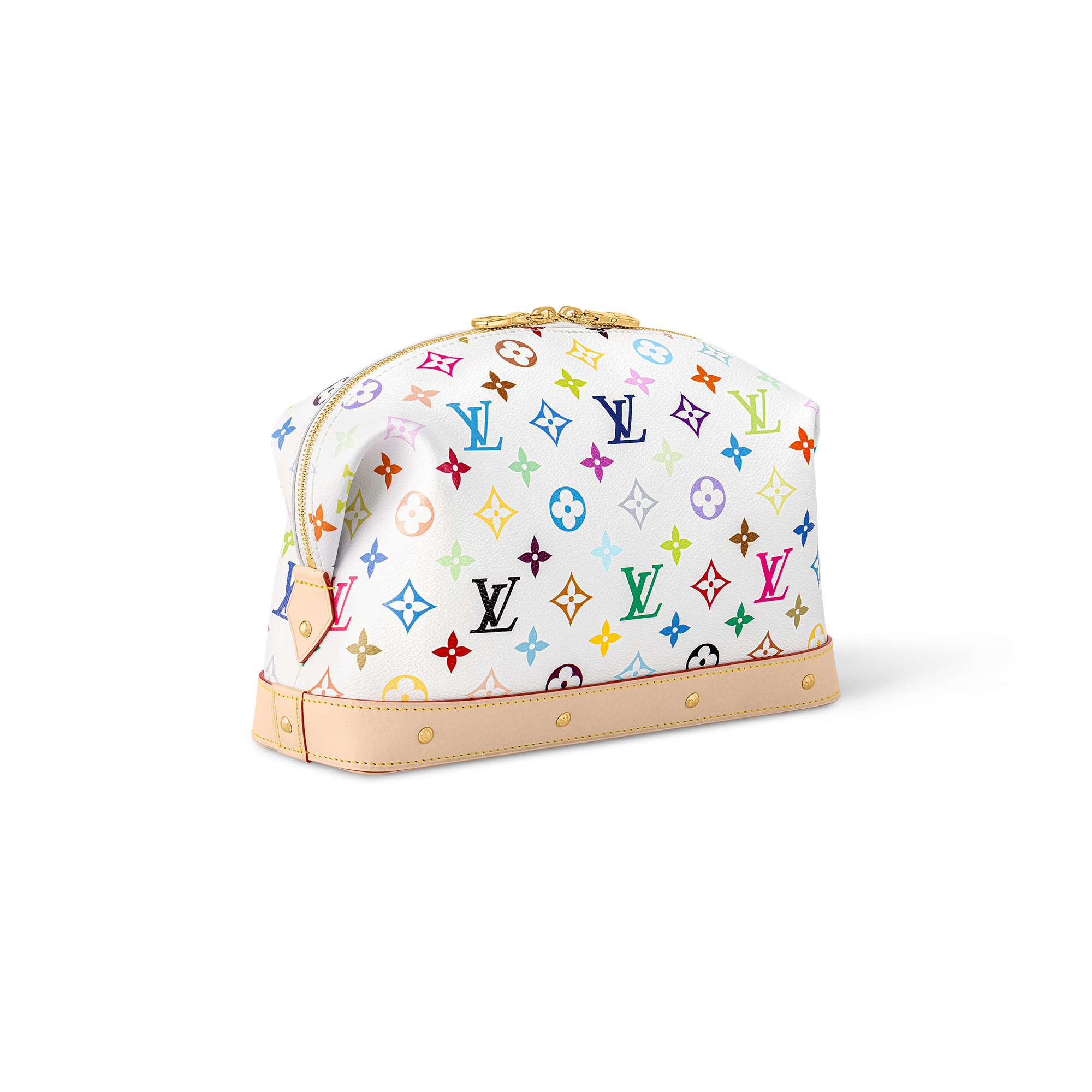 多彩なカテゴリーで展開する「ルイ・ヴィトン × 村上隆」コレクションにふさわしく、マルチカラーのモノグラム・キャンバスでタイムレスなアイテムをいきいきと再解釈した「LV × TM ポシェット・コスメティック GM」。この日本人アーティストを象徴するレインボーカラーから着想を得たデザインが魅力です。スタッズを配したヌメ革のトリミングが、デザインにエッジィなひねりをプラス。内側の広々としたコンパートメントに簡単にアクセスできる幅広のゴールドカラーのファスナーを添えた開口部と、水拭きできる実用的なテキスタイルライニングで仕上げました。