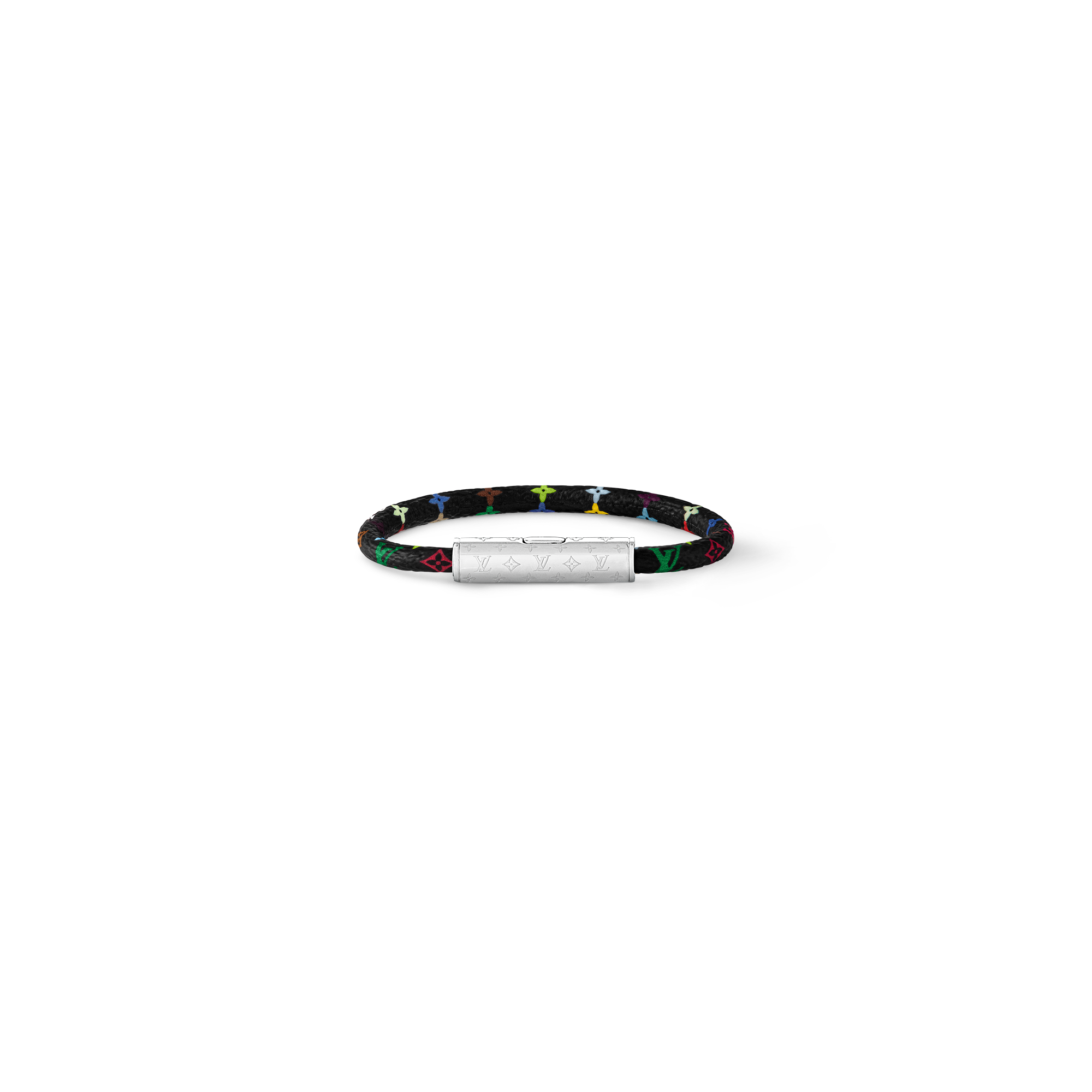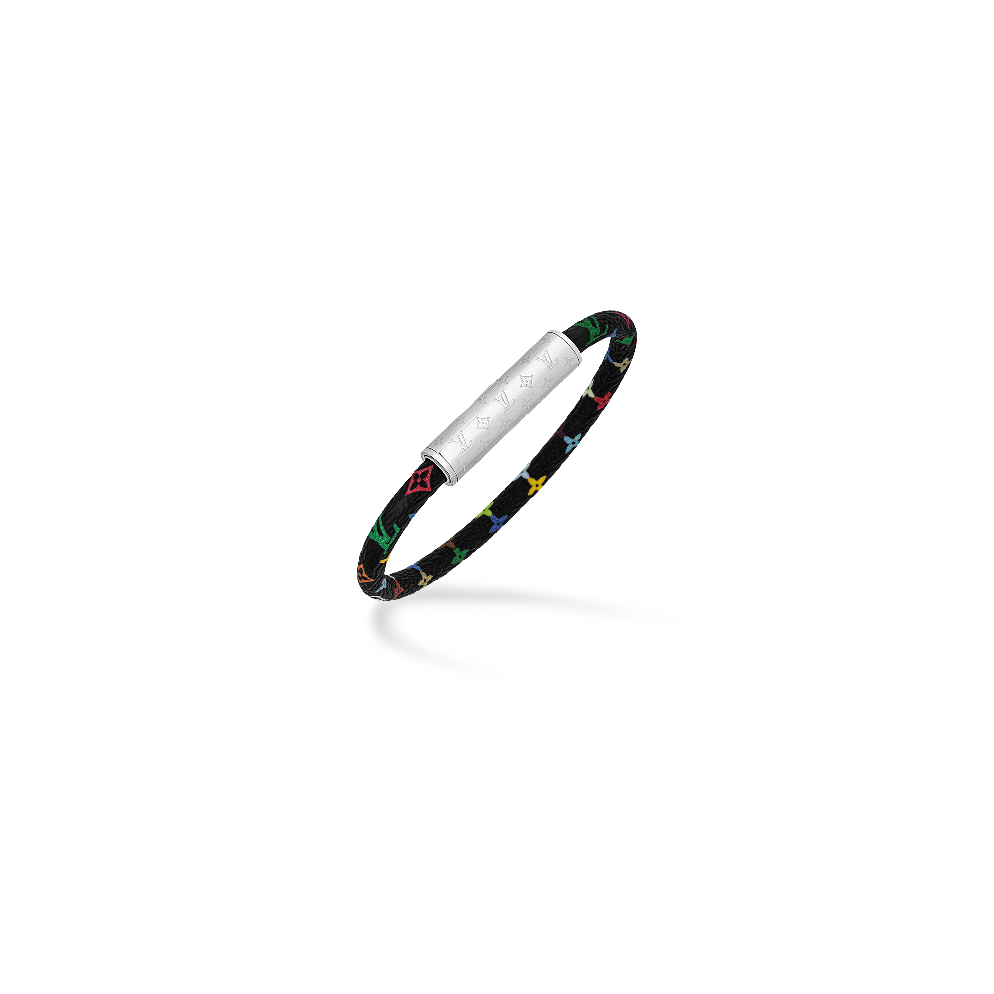今シーズンの「ルイ・ヴィトン × 村上隆」コレクションにより新たにアップデートされたアイコニックなデザインの「LV × TM ブレスレット・LV コンフィデンシャル」。著名な日本人アーティスト 村上隆によって伝統的なモノグラム・キャンバスが再解釈された、33色のレインボーカラーでエンブレマティックなモチーフをプリントしたモノグラム・マルチカラー キャンバスで仕上げています。ゴールドカラーのメタルの留め具には「Louis Vuitton」シグネチャーの刻印入り。本コレクションの他のアイテムと組み合わせて重ね着けも楽しめます。