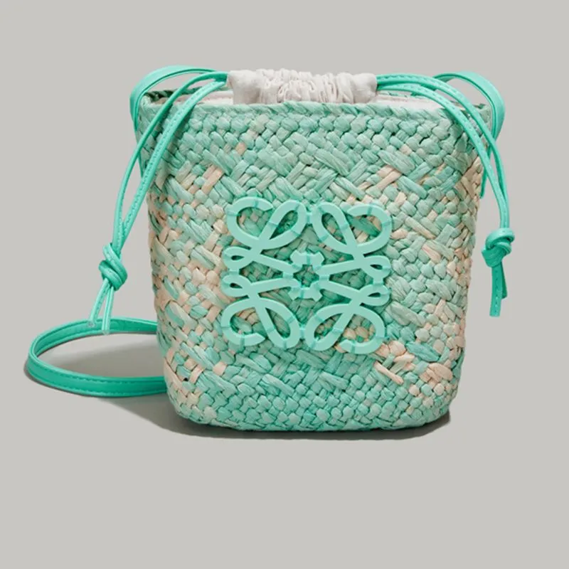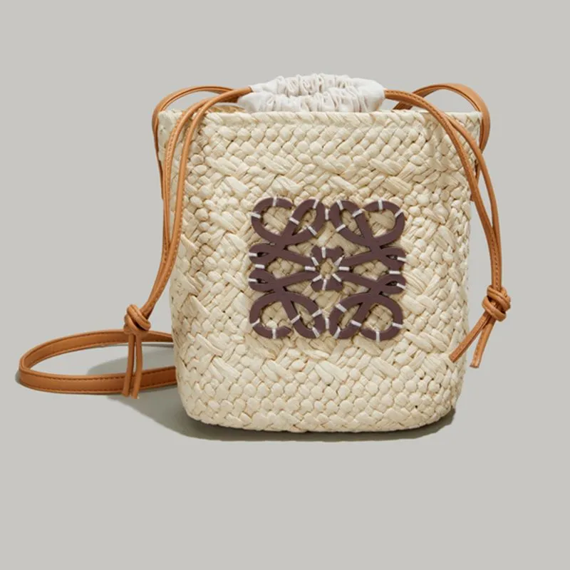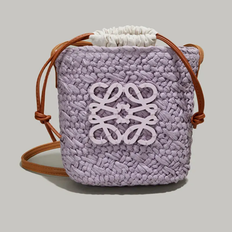 ヴィンテージの手編みレディースバッグ、2025年新作巾着バケットバッグ