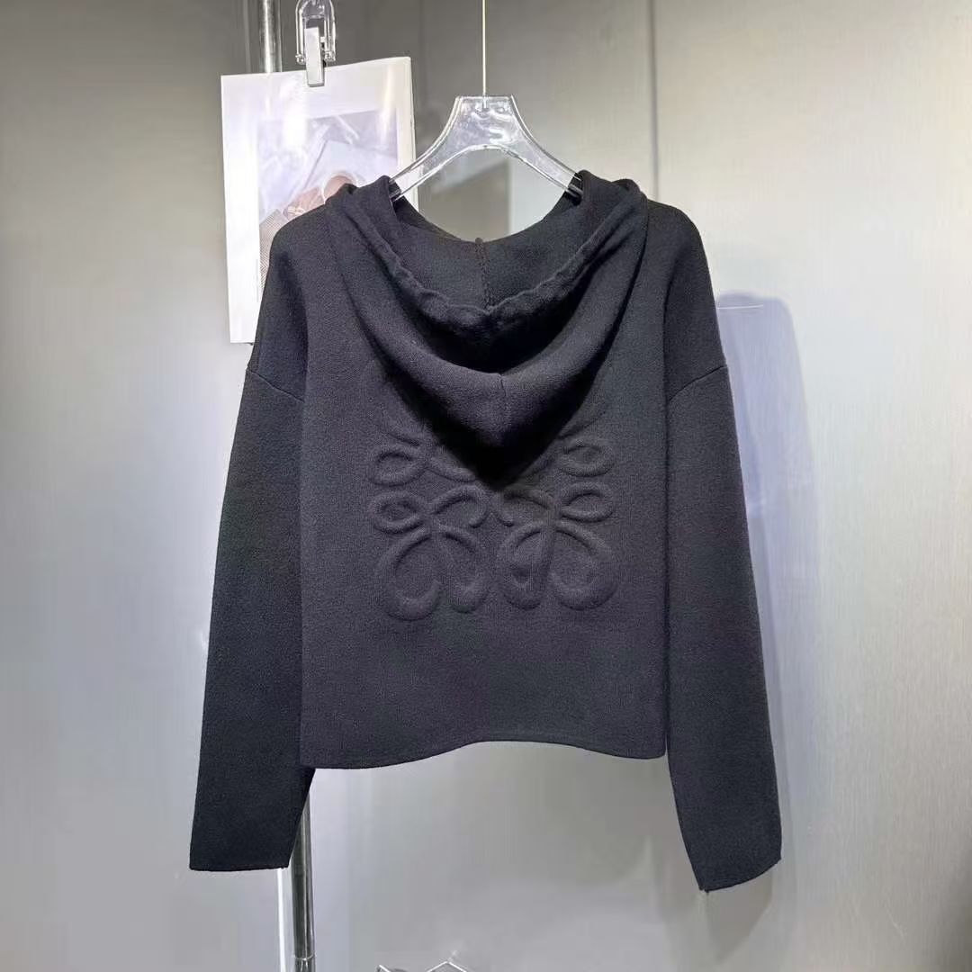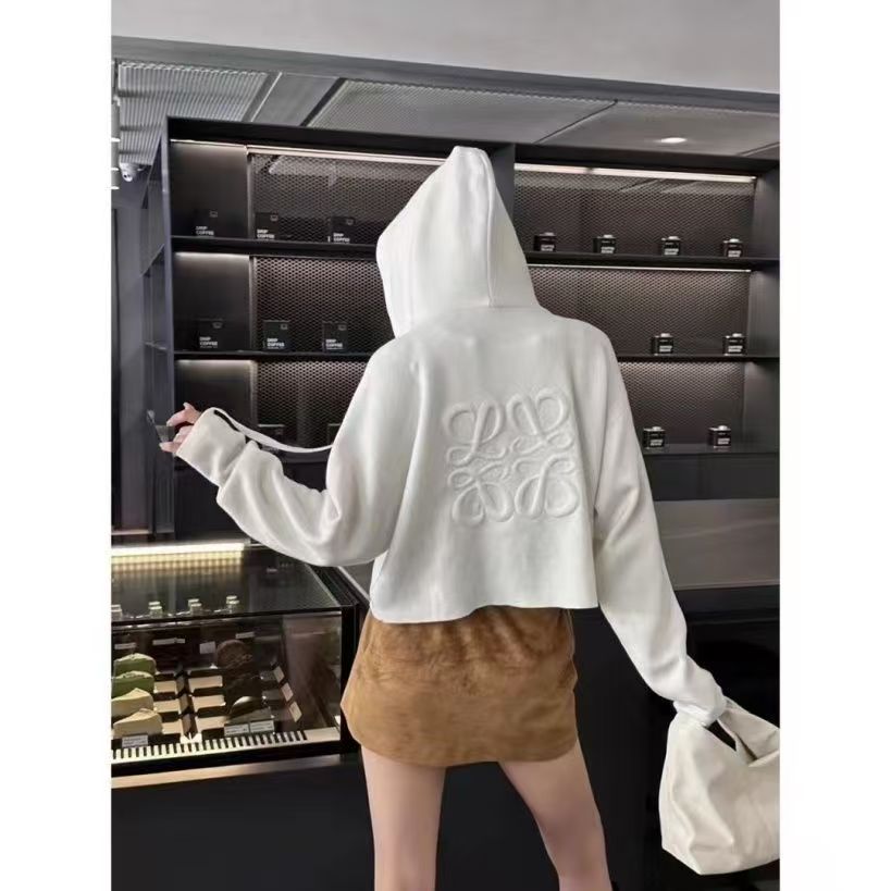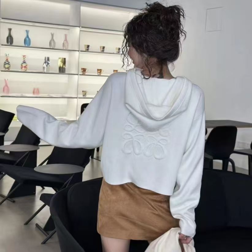 初秋新作 エンボスロゴ ショートカーディガン カレッジスタイル 立体エンボスクラフト フード付き