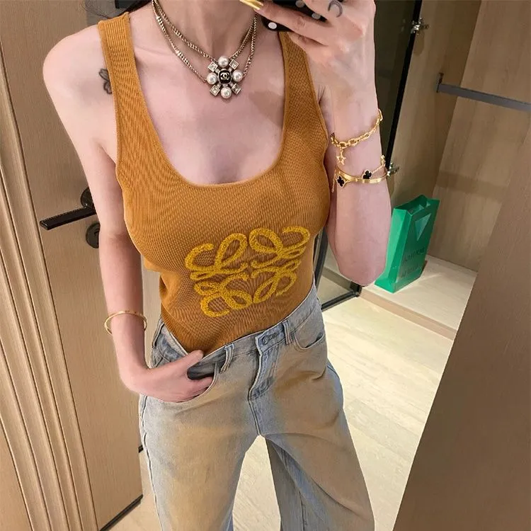 魅力的 スウィート 可愛い 無地 プリント 着瘦せ ニット 夏 レデイーズ タンクトップ