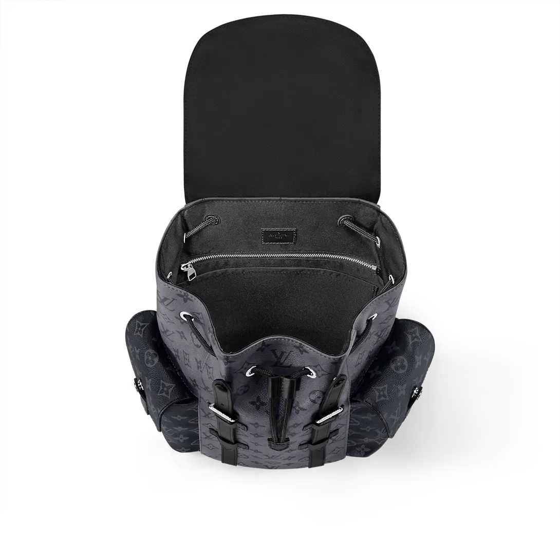 ブラックレザーのトリミングを施したモノグラムエクリプス リバース キャンバスが、印象的な表情を演出するバックパック「クリストファー PM」。2つのサイドポケットが必需品の出し入れを容易にし、スナップボタン付きのレザーフラップで開閉するボディ部分が大切なアイテムをしっかりと守ります。堅牢なハイキング用のリュックサックから着想を得たデザインを、小ぶりに再解釈しました。