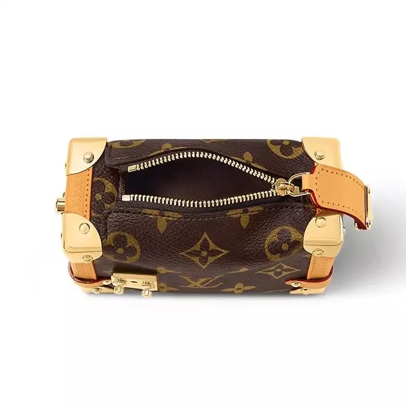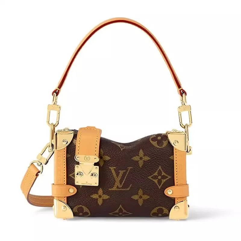 メゾンの伝統的なトランクを彷彿させる、長方形のサイドトランク PM。モノグラムキャンバスにカウハイドレザーのトリミングで、ゴールドカラーのメタルパーツをあしらいました。補強を施したコーナー部分とSロックスタイルの留め具は、ルイヴィトンが誇るトランクから着想を得たもの。手持ちでも、取外し & 調節可能なレザーストラップでショルダーキャリーでも楽しめます。