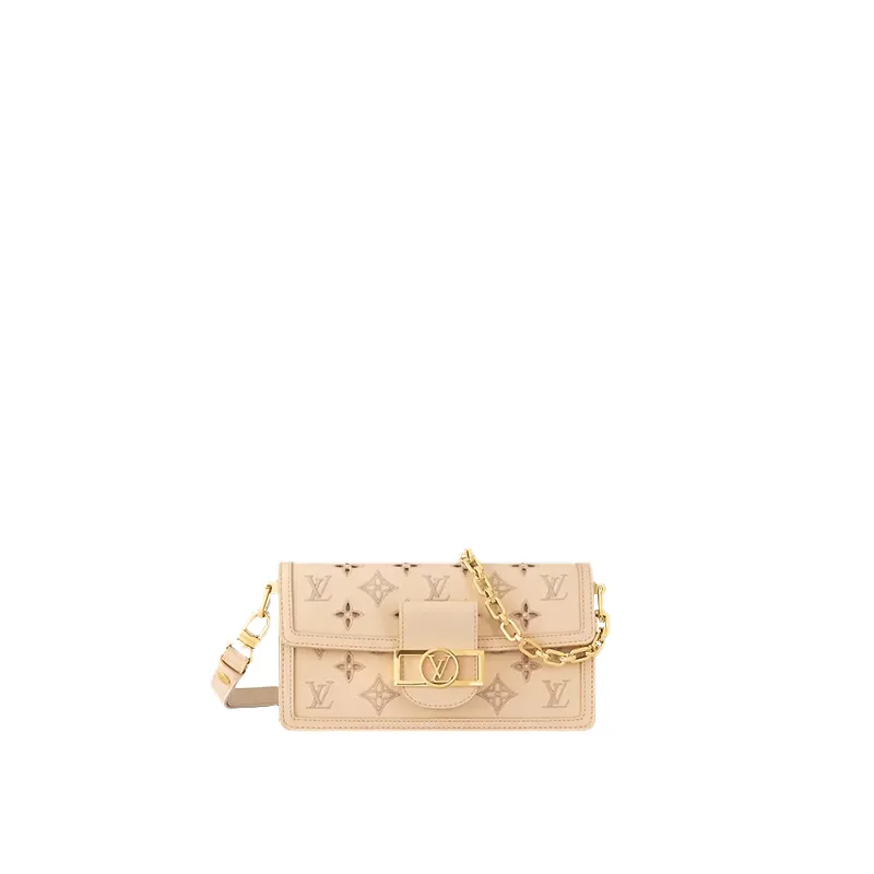 今シーズンのLV ブロデリーアングレーズのテーマで美しくアップデートしたドーフィーヌ EW。モノグラムパターンのカットアウトを施したなめらかなカーフレザーを使用し、ファッショナブルな横長のデザインに仕上げました。オープンワーク加工を美しく引き立てるブルドンステッチが、フェミニンなアングレーズ刺繍のような雰囲気を演出します。あらゆる夏の装いに彩りを添える、柔らかなベージュの色合いも魅力。