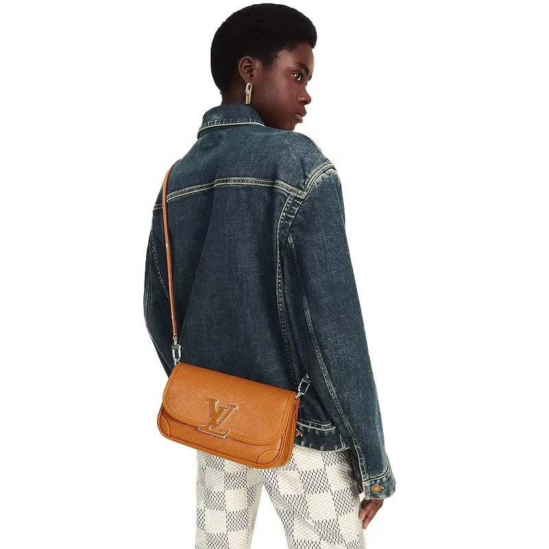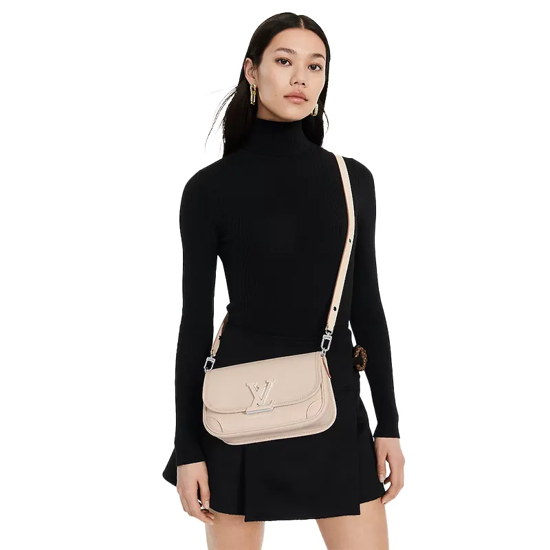 アイコニックなエピレザーで日常使いにぴったりのデザインに仕上げた、あらゆる装いを引き立てる「ビュシ NM」。タイムレスなアイテムの柔らかなラインに、なめらかなレザーのコーナー部分やエッジ、マチでアクセントを効かせました。洗練されたモダンな印象を醸し出す、トーナルなレジンのLV イニシャルのオーナメントも魅力です。調節可能なストラップで、エレガントなショルダーバッグとしてご使用いただけます。