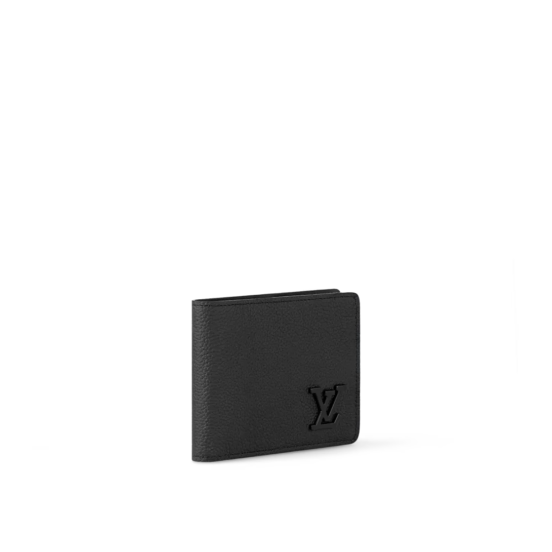 ブラックのカーフレザーを使用し、落ち着いたエレガンスでアップデートしたポルトフォイユミュルティプル。特別な縮充加工の技法を施し、手触りの良いグレインを実現しました。さりげないブラックメタルのLV シグネチャーがメゾンならではの洗練された個性をプラスします。端正で機能的なアイテムは、LV アエログラムラインのバッグとも相性抜群です。