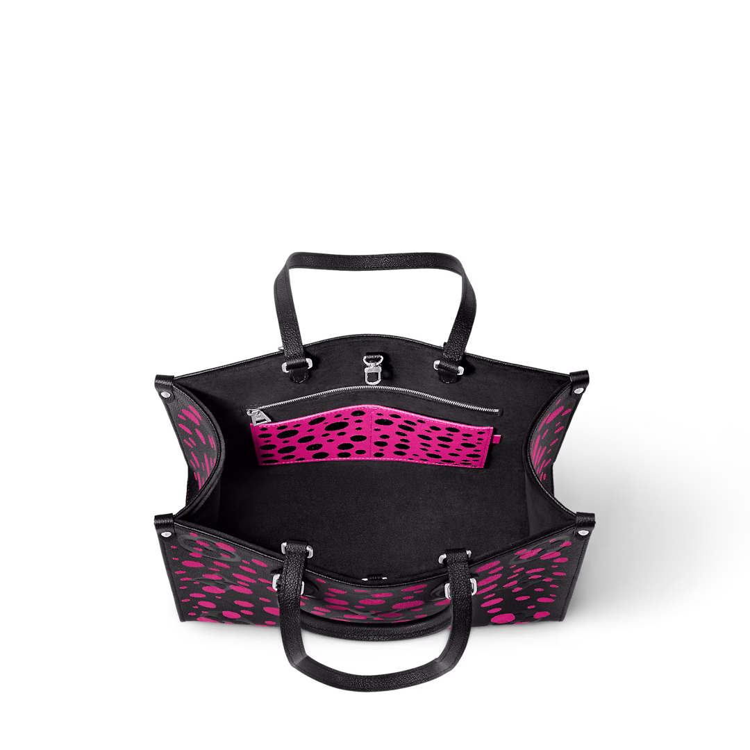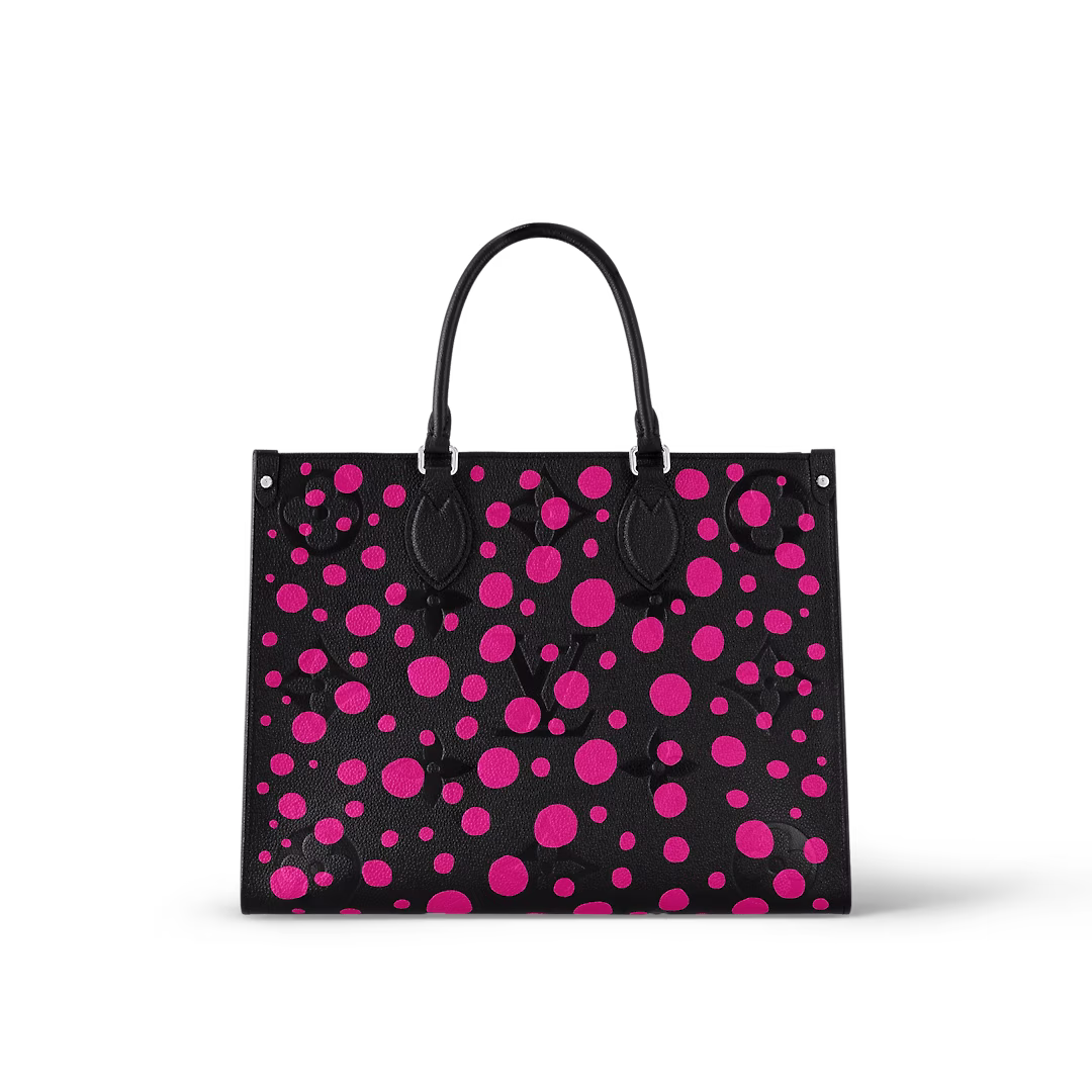 「ルイヴィトン × 草間彌生」コラボレーションの新作コレクションに相応しく、「インフィニティ ドット」のテーマで表現した「LV × YK オンザゴー MM」。1960年代からアヴァンギャルドなアート界に影響を与え、広く愛されその名を知られる日本人アーティストの草間彌生は、目の眩むような水玉模様で知られています。ブラックのモノグラムアンプラント レザーに鮮やかなフューシャカラーの「インフィニティ ドット」のモチーフをあしらった、大容量で使い心地の良いバッグです。草間のもう1つの視覚的なシグネチャーであるカボチャを象った取外し可能な「パンプキン」のモチーフのチャームも魅力。