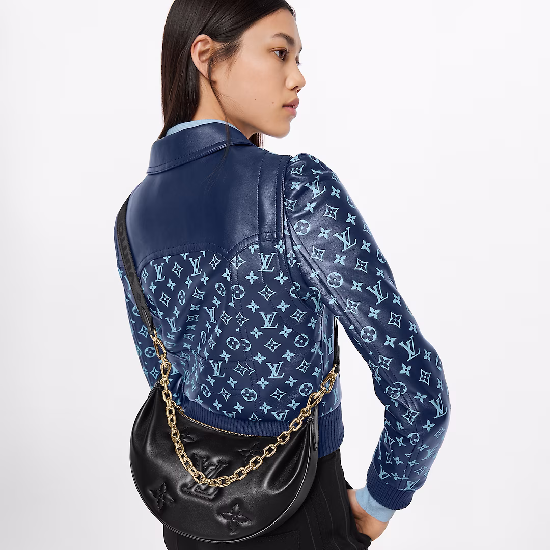 キルティング加工を施したカーフレザーをさまざまなスタイルに合わせてお楽しみいただけるシェイプに仕上げた「オーバー ザ ムーン」。パフ感溢れるモノグラムパターンの刺繍が際立つアイテムは、調節可能なストラップとゴールドカラーのチェーンで、肘に掛けたり、短めや長めのショルダーバッグやクロスボディバッグとしてなど、さまざまな持ち方をお楽しみいただけます。ストラップを外せば、イブニングシーンにぴったりのクラッチバッグにも。