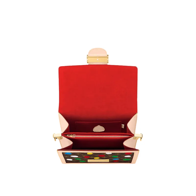 エクスクルーシブな「ルイヴィトン × 草間彌生」コレクションのテーマである「ペインティッド ドット」のモチーフを散りばめた「ドーフィーヌ MM」。高い評価を受ける日本人アーティスト 草間彌生は、幼少期から象徴的なモチーフとして水玉模様を用いることで知られています。今回はレインボーカラーのドットをスクリーンプリントの技法で立体的なハンドペイント風に再現し、モノグラムキャンバスにあしらいました。生き生きとした新たな表情で、クリエイティビティ溢れるエネルギーをプラスしたクラシカルなバッグです。
